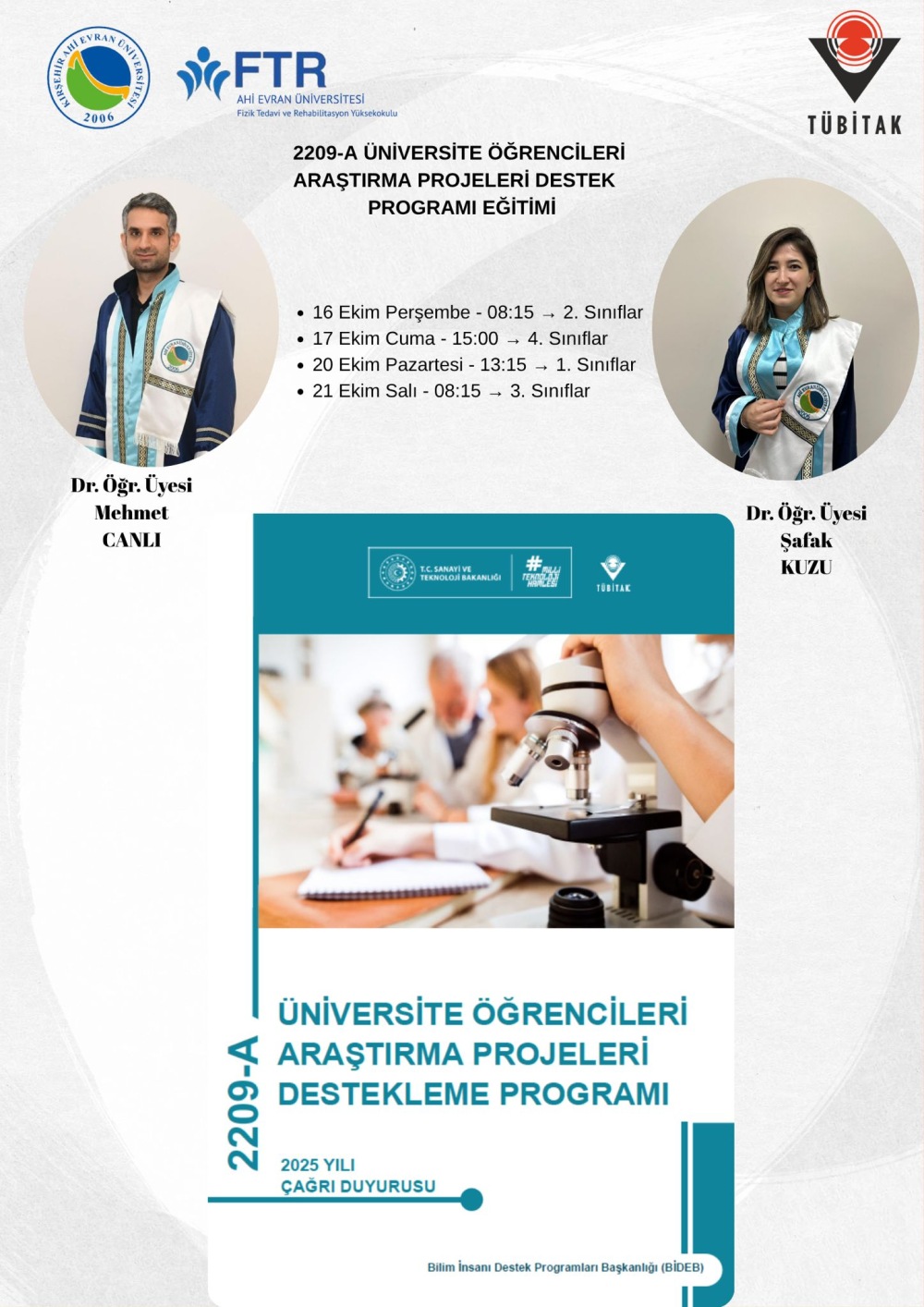 Yüksekokulumuzda öğrencilere yönelik TÜBİTAK 2209-A Proje Eğitimi gerçekleştirilecektir.