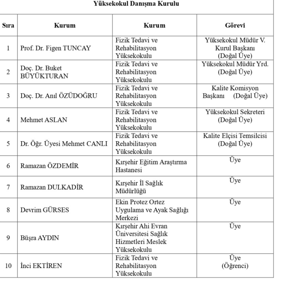 Yüksekokulumuz danışma kuruluna ulaşmak için